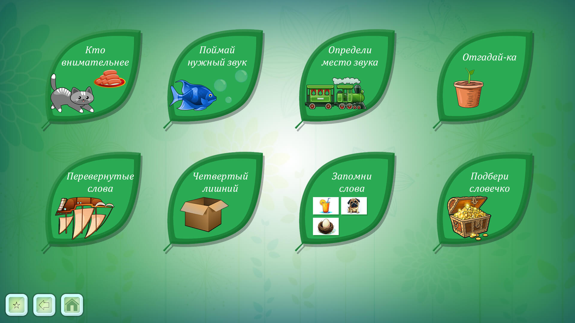 Программа включает в себя упражнения и игры, которые разделены на 4 основных блока: