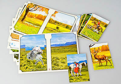 Каждое игровое поле посвящено одной природной области на каком-либо континенте. На карточках изображены животные и люди, характерные для определенной природной области какого-либо континента; они служат продолжением изображений на игровых полях и содержат общие с ним детали фона.