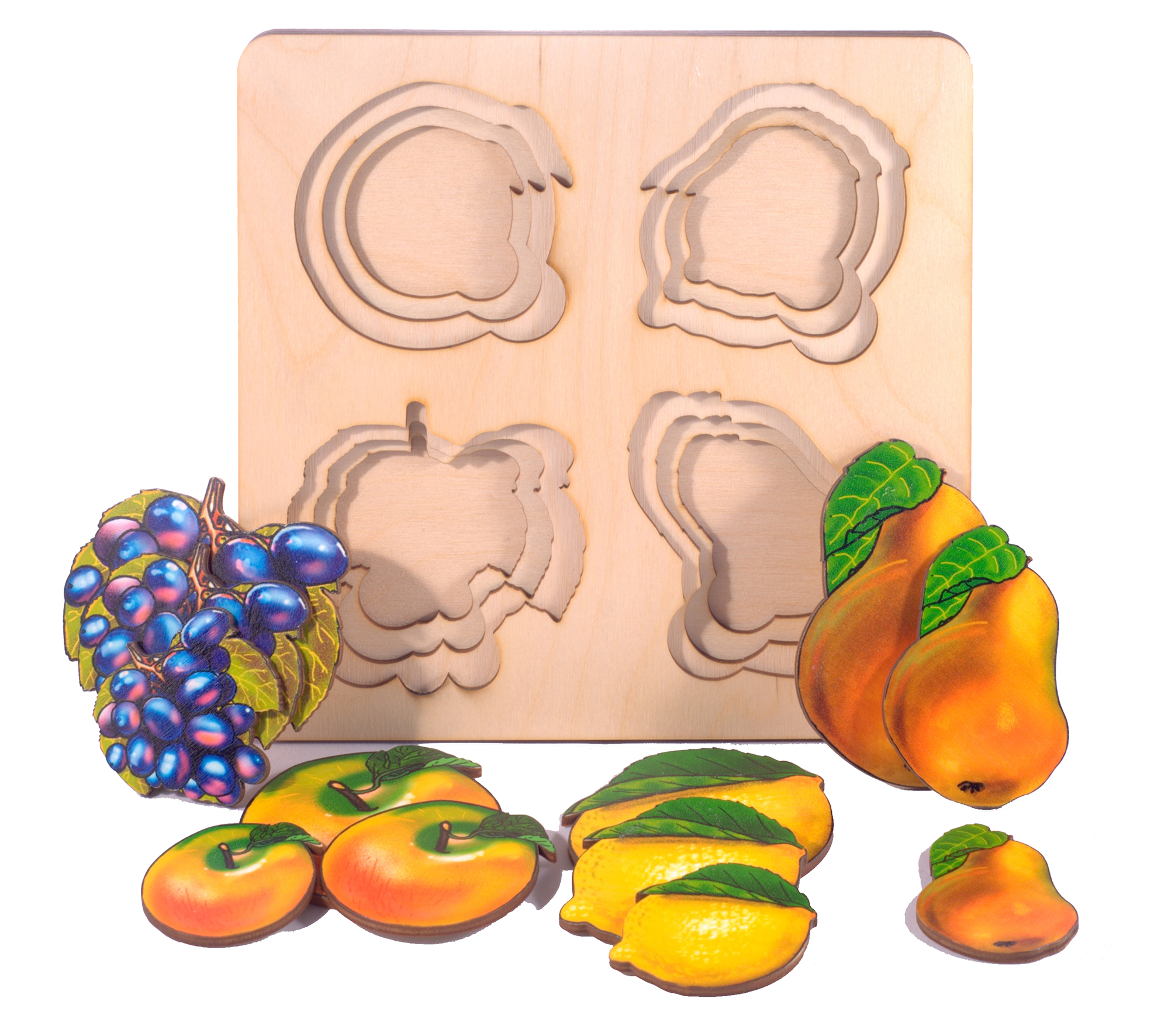 Больше-меньше "Фрукты" развивающая доска Сегена (Дерево)
