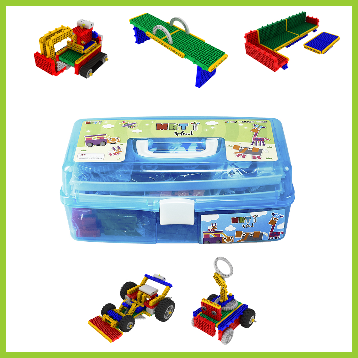 Электронные компоненты набора представлены 1 большим DC двигателем в закрытом пластиковом корпусе с возможностью одновременно присоединить и вращать 3 оси.