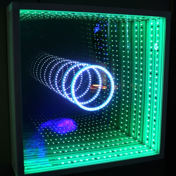 "БЕСКОНЕЧНОСТЬ" ИНТЕРАКТИВНОЕ СВЕТОВОЕ ПАННО - специальным образом выполненная зеркальная конструкция, внутри которой, при включении, выстраивается световой тоннель, уходящий вдаль, в бесконечность.