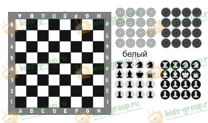 В наборе: шашки (с одной стороны) и шахматы (с оборотной стороны эти же фигурки)