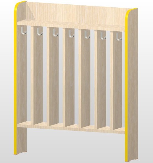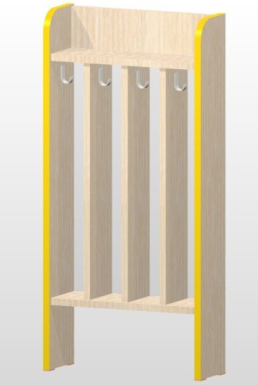 ЛДСП 16 мм, кромка ПВХ 0,4 и 2 мм, задняя стенка ХДФ 3,2 мм, в каждой ячейке крючок, ширина ячейки 92 мм, верхняя полка Н95 мм, от пола до нижней полки 155 мм.