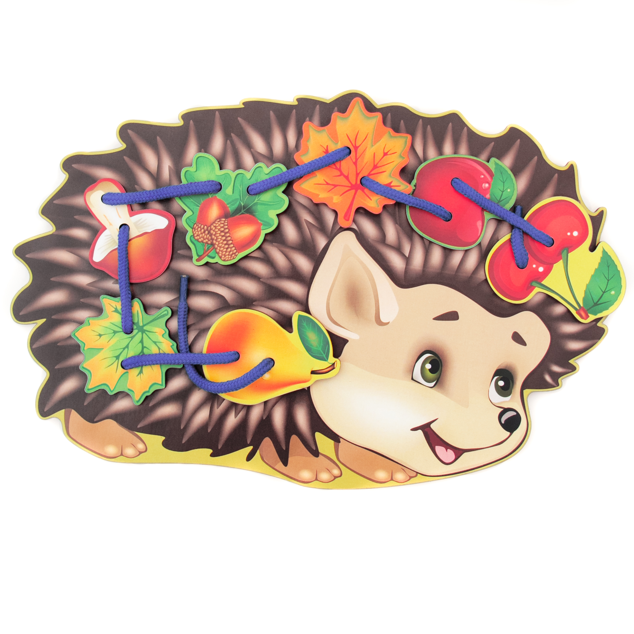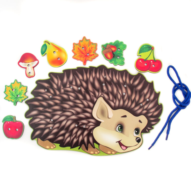 Деревянная панель в виде Ёжика с отверстиями для продевания шнурка – 1 шт.;