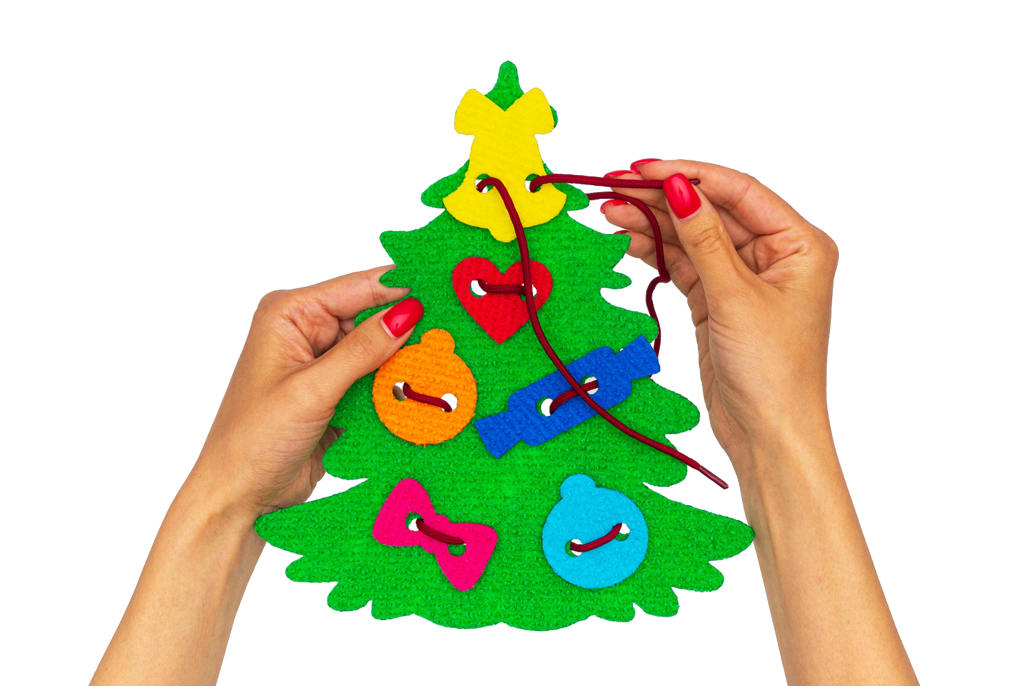Елка 21*24см, фигурки - 6шт., шнурок. Материал - ковролин