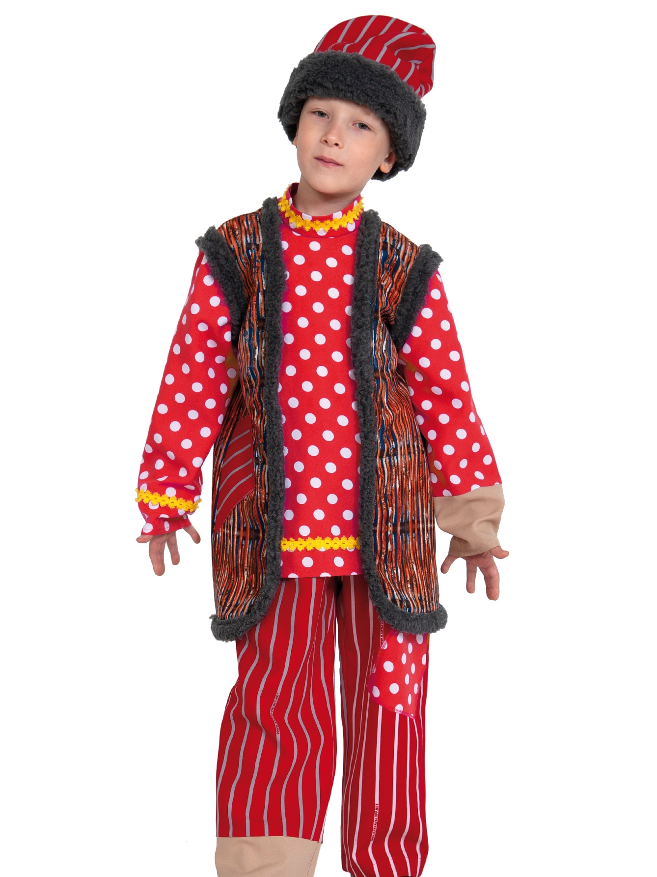 рубаха с жилетом, брюки, шапка