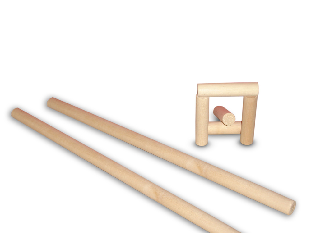 В комплекте игры 2 биты, 5 рюх (городки). Длина биты 60см, длина рюх 12см. Диаметр городков 29мм.