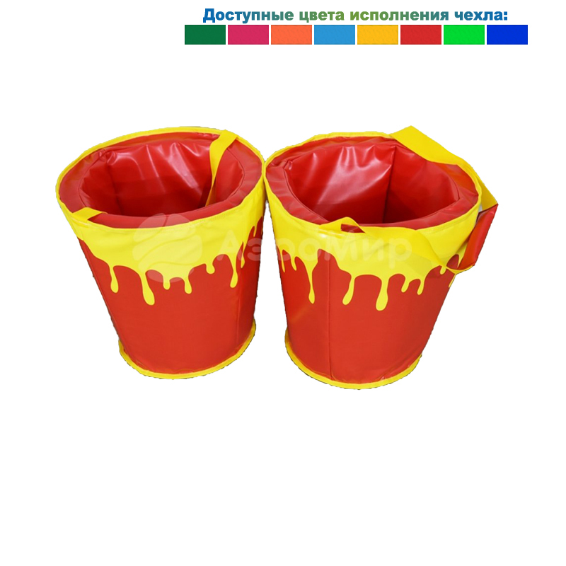 Вёдра для эстафет представляет собой пару мягких изделий, состоящих из чехлов сшитых из тента ПВХ и наполнителя - прочного поролона (ППУ - пенополиуретан плотностью 19,3 кг/м3). У модулей имеется молния со скрытыми замками для замены наполнителя.. Поставляется в собранном виде. Максимальный общий вес участника: дети и взрослые от 12 до 80 кг. (превышение допустимой нагрузки приводит к преждевременному износу изделия) Подробнее