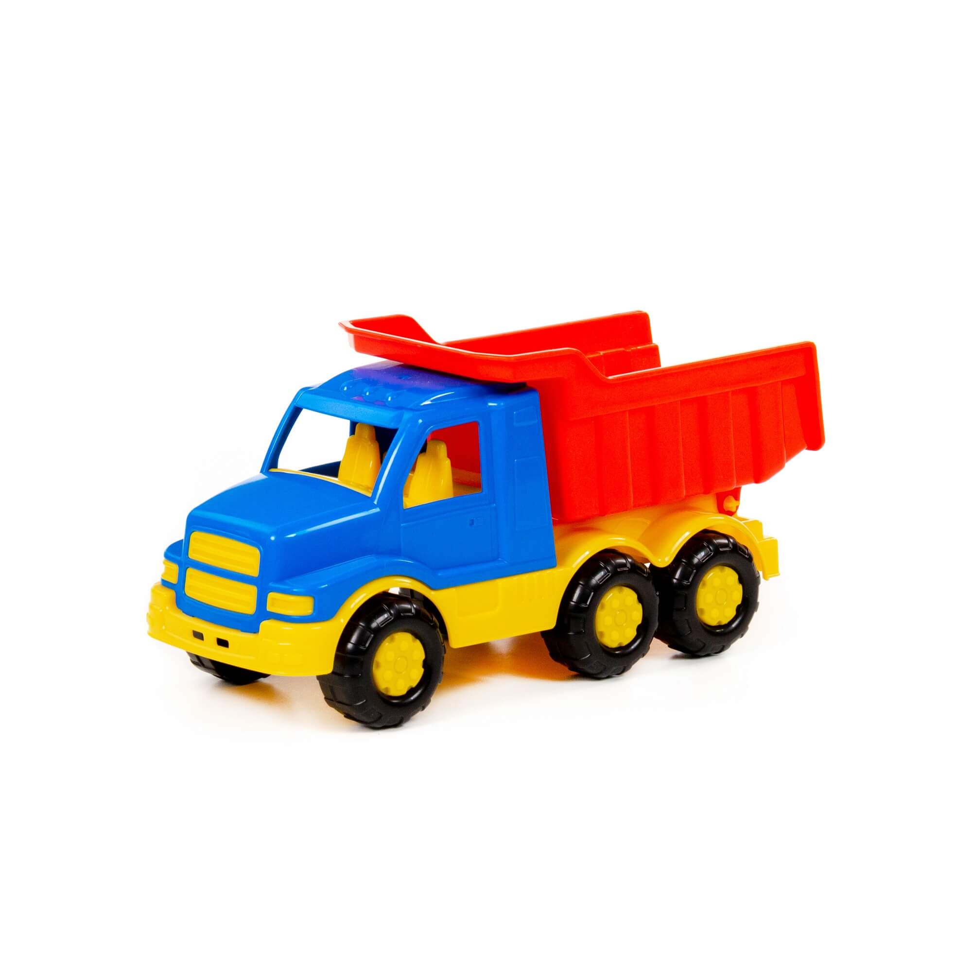 Автомобиль-самосвал Гоша имеет оптимальный размер для игры как дома, так и на улице. В кузове карьерного типа удобно возить песок, насыпать и ссыпать его в песочницу.