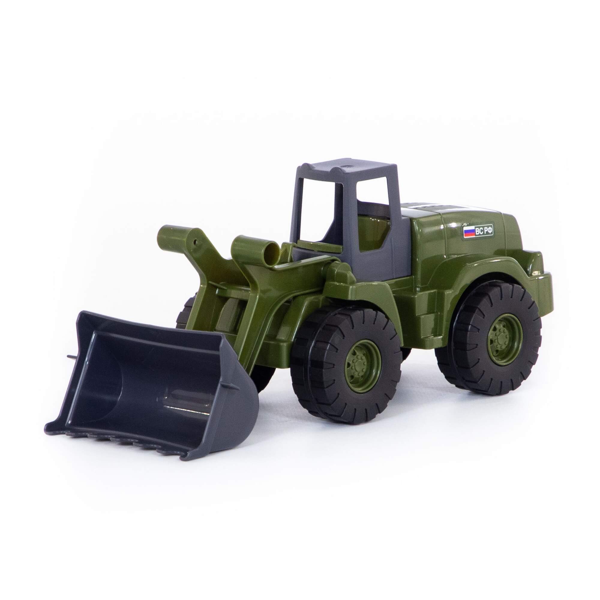 Агат, трактор-погрузчик военный позволит малышам разнообразить сюжетные игры дома или на улице.