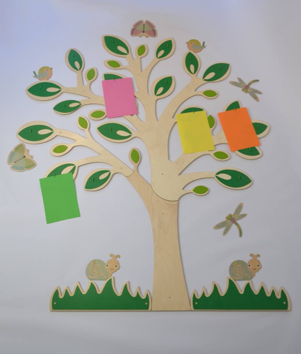 Демонстрационная система для организации выставки детских работ, размещения информации и методического материала. Для крепления рисунков на листьях дерева имеются декоративные прищепки. В комплекте с деревом вы получите травку, бабочек, стрекоз, птиц и улиток (всего 10 элементов).