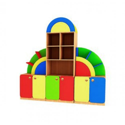 Стенка детская «Радужность». Выполнена из ламинированной ДСП (ЛДСП) 16 мм, края обрамлены кантом ПВХ 2 мм. Возможно изготовление с фотопечатью.