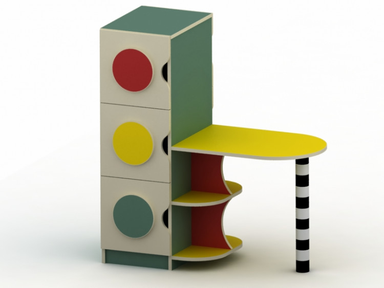 ЛДСП толщиной 16 мм, противоударная кромка ПВХ 2 и 0,4 мм. Опора из массива, покрытая эмалью