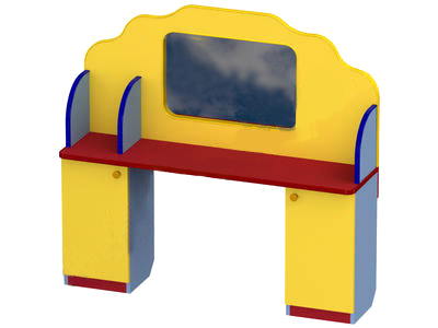Стол логопедический СЛ-01. Выполнен из ламинированной ДСП (ЛДСП) 16 мм, обрамлены кантом ПВХ 2 мм. Модель отличается простотой исполнения и удобством. Для хранения пособий и других необходимых предметов по краям логопедического уголка предусмотрены тумбы с полочками и дверцами. Столешница разделена бортиком, на ней можно разложить необходимые для занятий пособия, карандаши, ручки, книги. Также для более комфортного проведения занятий над столешницей расположено большое широкое зеркало. Все элементы установлены на регулируемые опоры, позволяющие компенсировать неровности пола. Цвет на выбор. Возможно изготовление с фотопечатью.