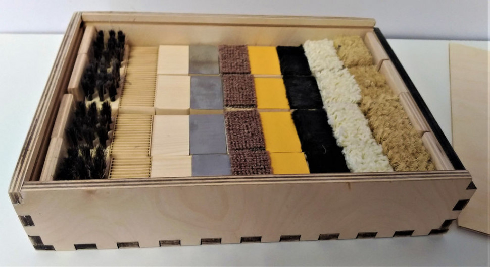 В коробкууложены комплекты, каждый из которых содержит по 9 элементов с разной текстурой поверхности. Игра рассчитана на 2-9 игроков. В более сложном варианте игры основное внимание уделяется не определению элемента, а описанию свойств его поверхности и возникающих тактильных ощущениях.