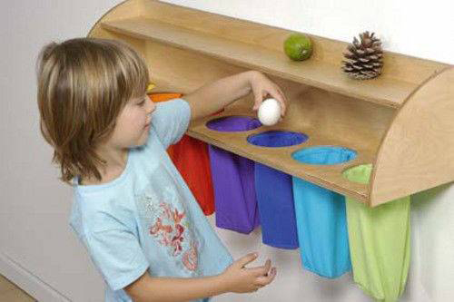 Настенный модуль с 7 тканевыми мешочками, которые предназначены для развития навыков идентификации и исследования через прикосновения.