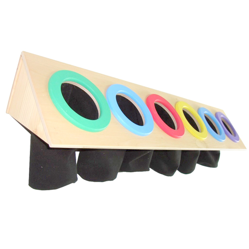 Данная форма позволяет крепить корпус модуля-панели к стене, расположить на полу или столе. В фасадной части располагаются шесть круглых отверстий внутрь панели, которые окантованы тканевым цельными мешочками-рукавицами.