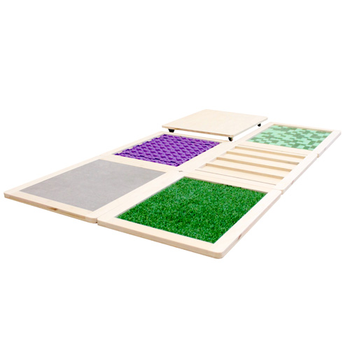 Тактильная дорожка - это пять модулей, выполненных из фанеры, с различным тактильным наполнением.