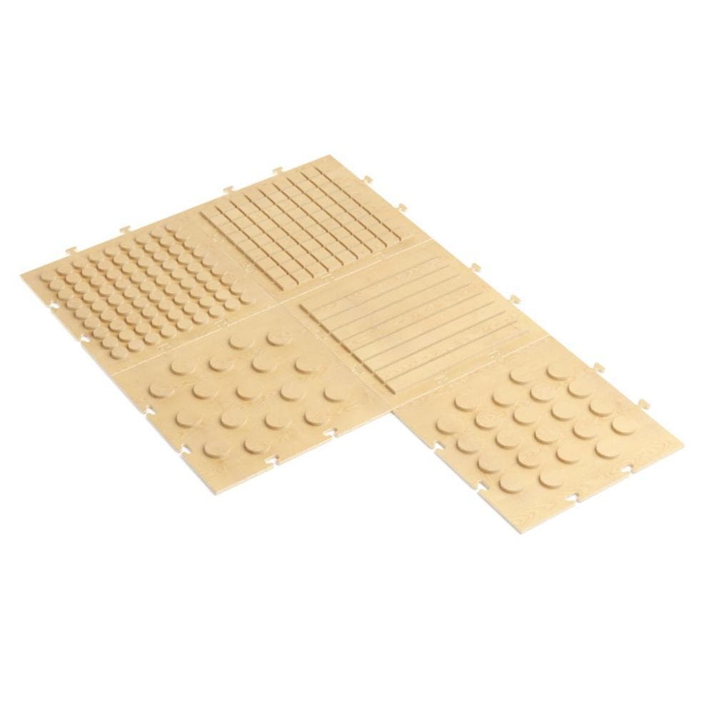 Модули поставляются в виде комплектов из 5 квадратных секций, соединяющихся между собой по типу конструктора с помощью систему шип-паз.