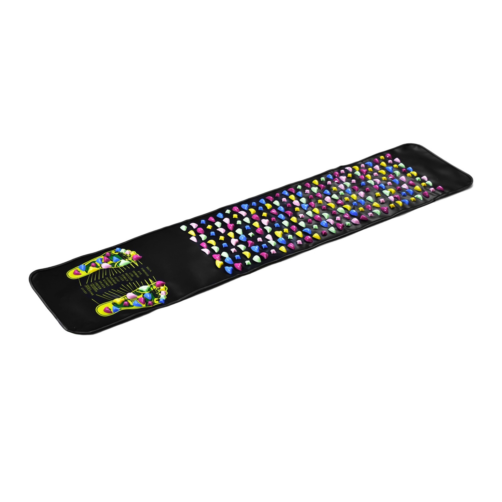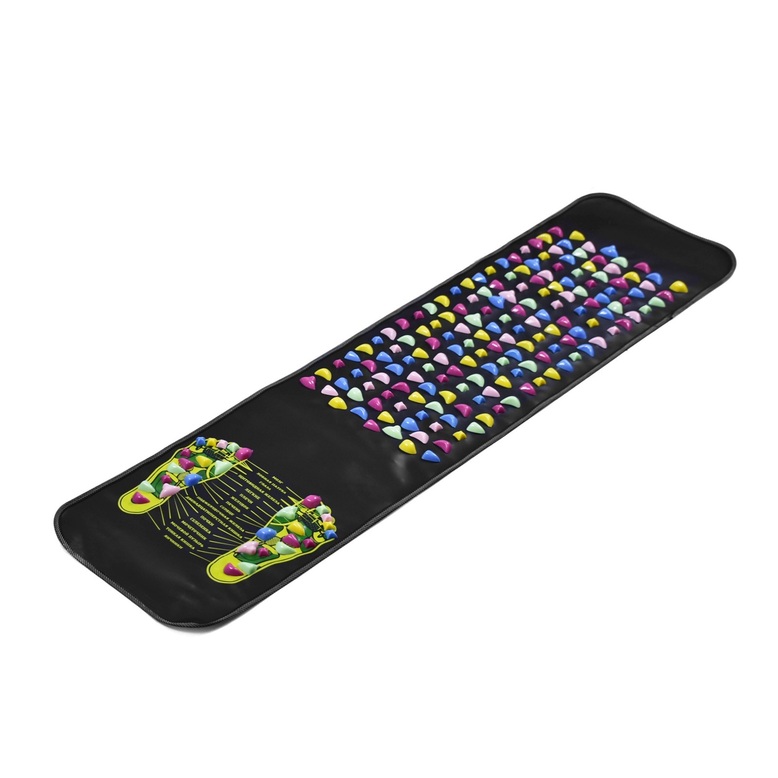 Представляет собой коврик из гладкого нетканного материала с вставками из пластиковых элементов разного размера. Для продвинутого уровня подготовки. В случае загрязнения достаточно просто протереть влажной тряпкой или губкой. Имеет отдельные элементы для точечного массажа ступней.