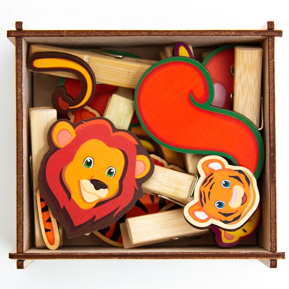 Игра с прищепками Собери дикое животное №2 изготовлена из дерева – экологически чистого и гипоаллергенного материала.