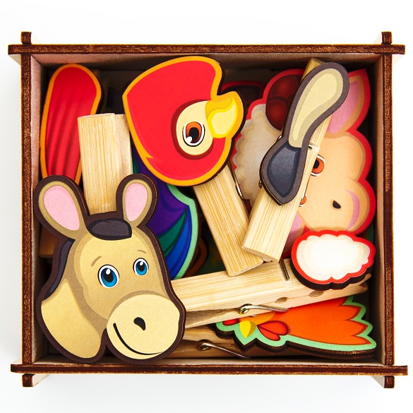 Игра с прищепками Собери домашнее животное №2 изготовлена из дерева – экологически чистого и гипоаллергенного материала.