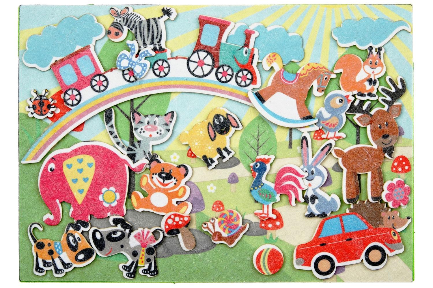 Игровое поле с карманом 28*20см, весёлые зверушки, элементы природы, а также другие игрушки. Фигурки от 2,5*2,5см до 20*6см
