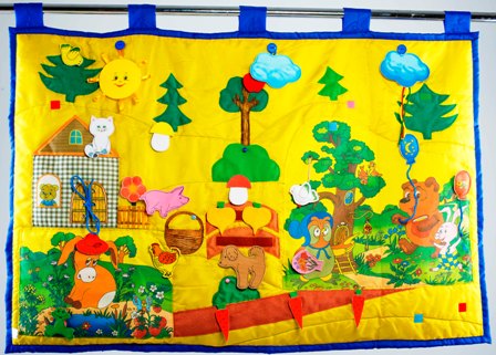 С этим ковриком вы сможете разыграть с ребенком множество различных ситуаций, сюжетов и непременно придумать свои собственные. Фантазируйте и находите новые возможности для интересных и увлекательных игр. Коврик снабжен основными видами застежек: липучки, пуговицы, шнуровка. На коврике есть колокольчик, пищалка. Все навесные элементы можно перемещать по полю коврика, изменяя и развивая сюжет игры. Размер 100*70см. С помощью петель коврик можно крепить на стену.