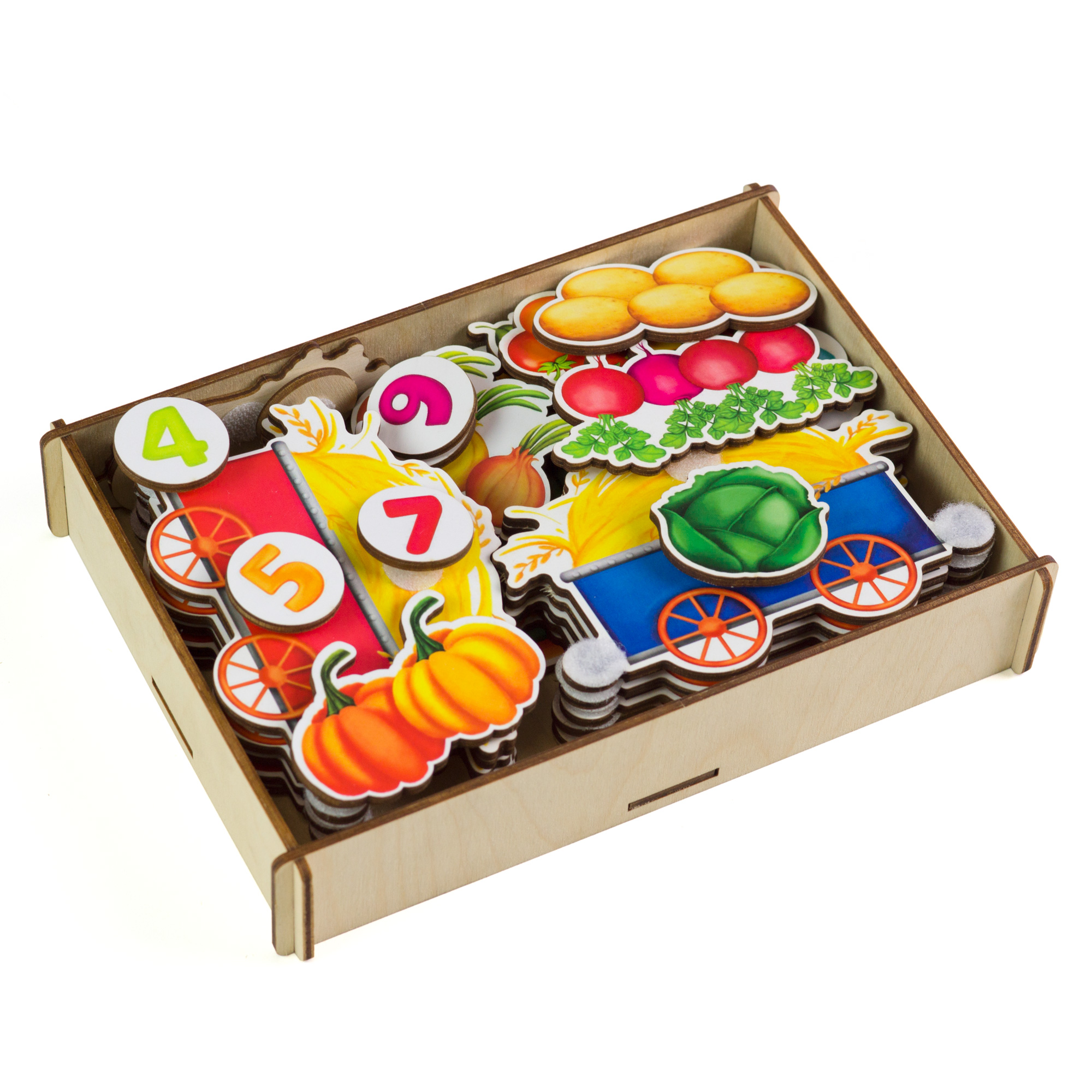 Липучка Поезд с овощами изготовлена из дерева – экологически чистого и гипоаллергенного материала.