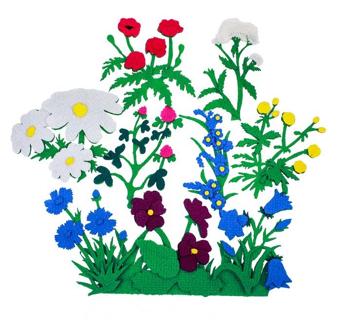 Ромашка, мак, василек, колокольчики, клевер, незабудки, кашка, лютик, фиалки 15*15см,поле 25*35