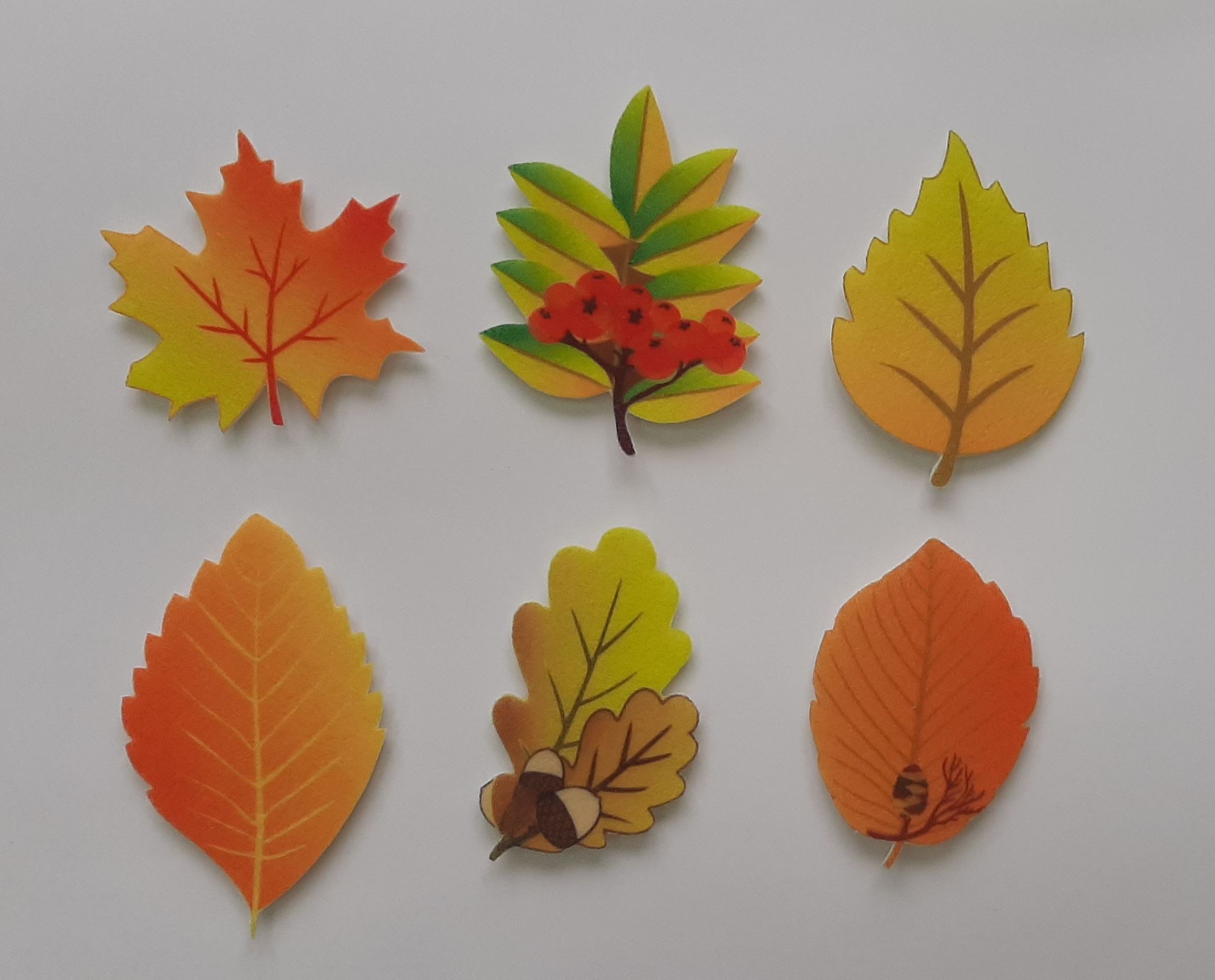 Дидактический набор «Листья». В наборе — дуб, береза, осина, рябина, клен, вяз. Каждая фигура снабжена липучкой (лентой Velcro). Данный набор подходит для работы с игровым полем.