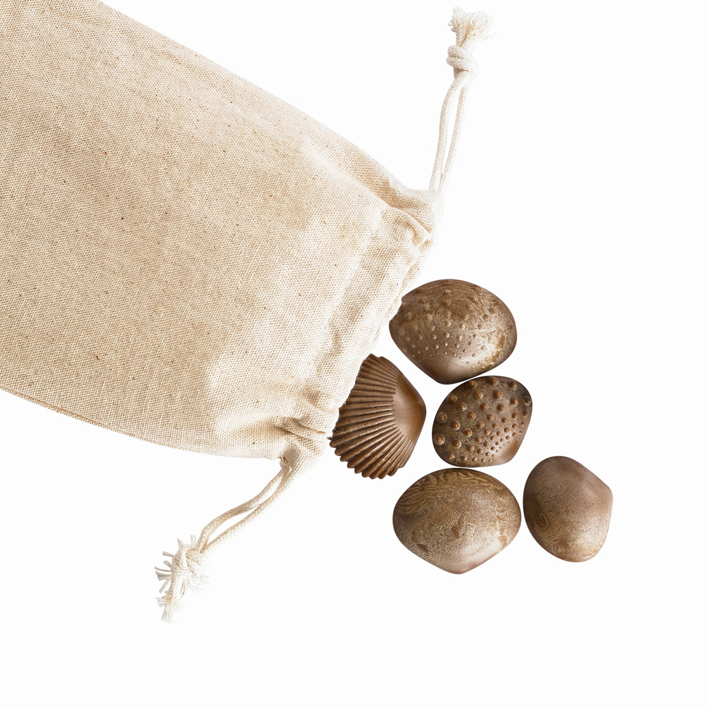 В состав набора входит текстильный мешок для хранения раковин.