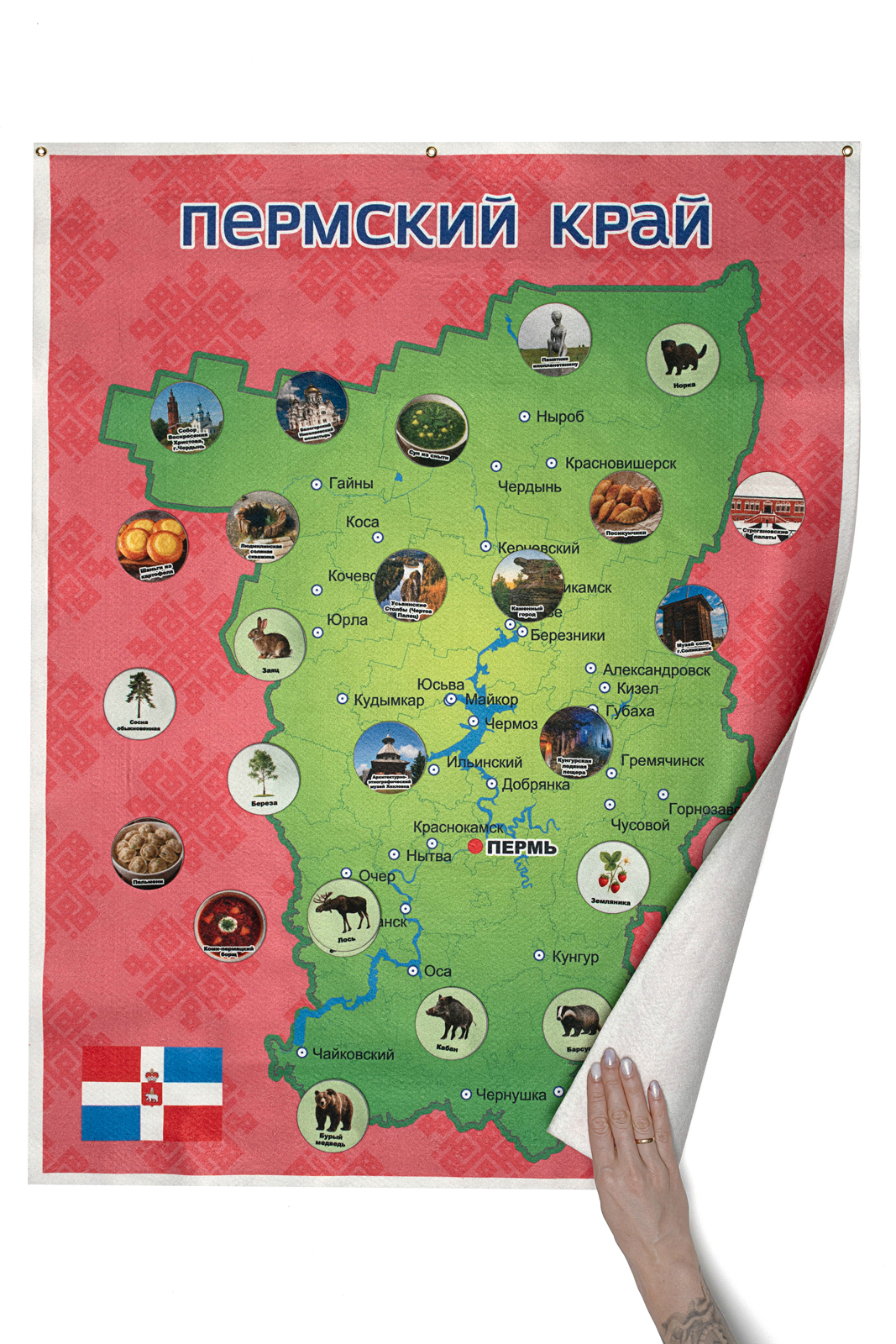 Панно 70х90см, карта региона и фигурки с информацией о регионе.