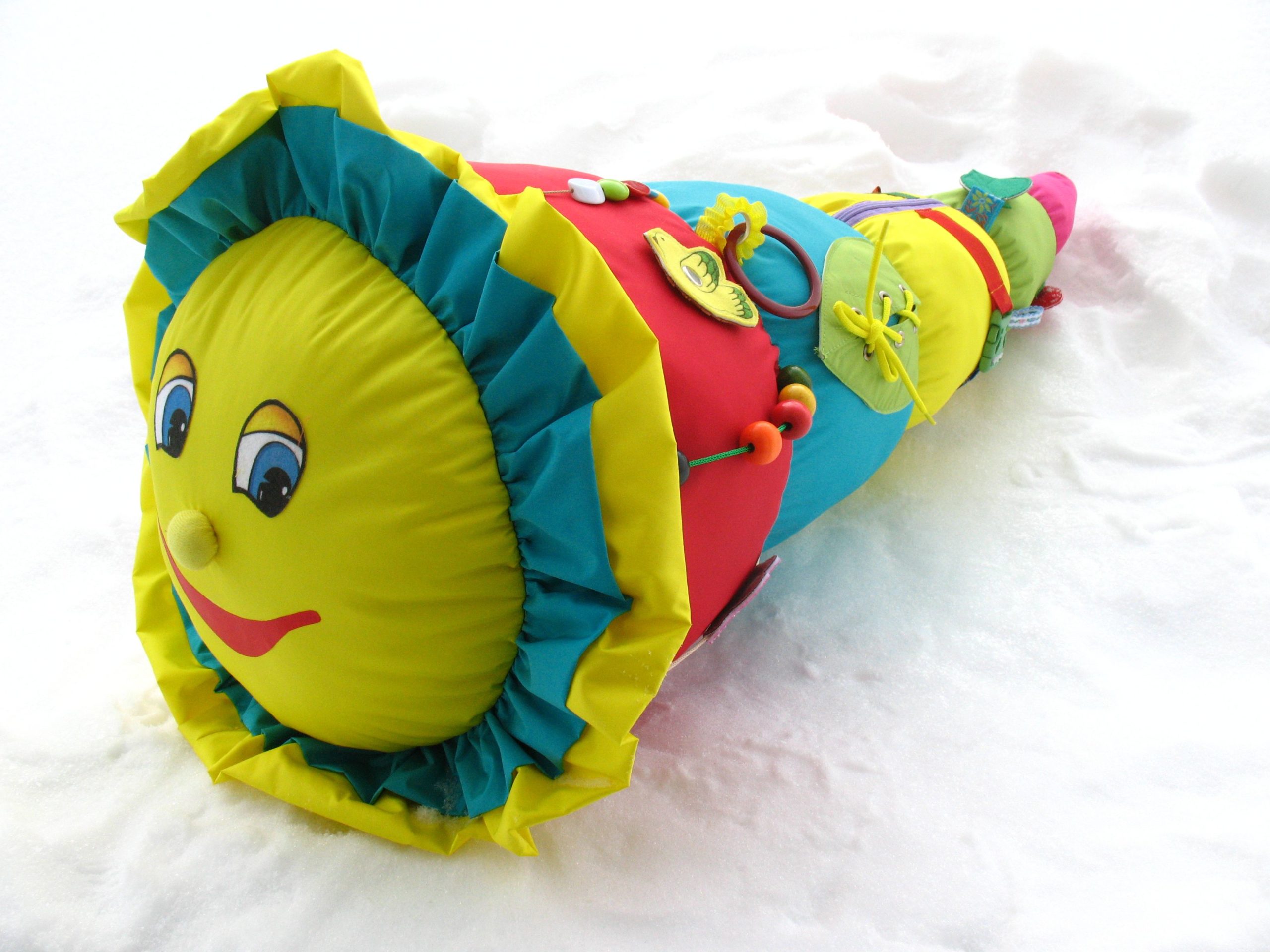 Кроме цветных вставок, он снабжен различными видами застежек (карабин, шнуровка, молния, резинка) и декоративных элементов (бусины, кольца, навесные элементы), которые делают игру более интересной и занимательной.