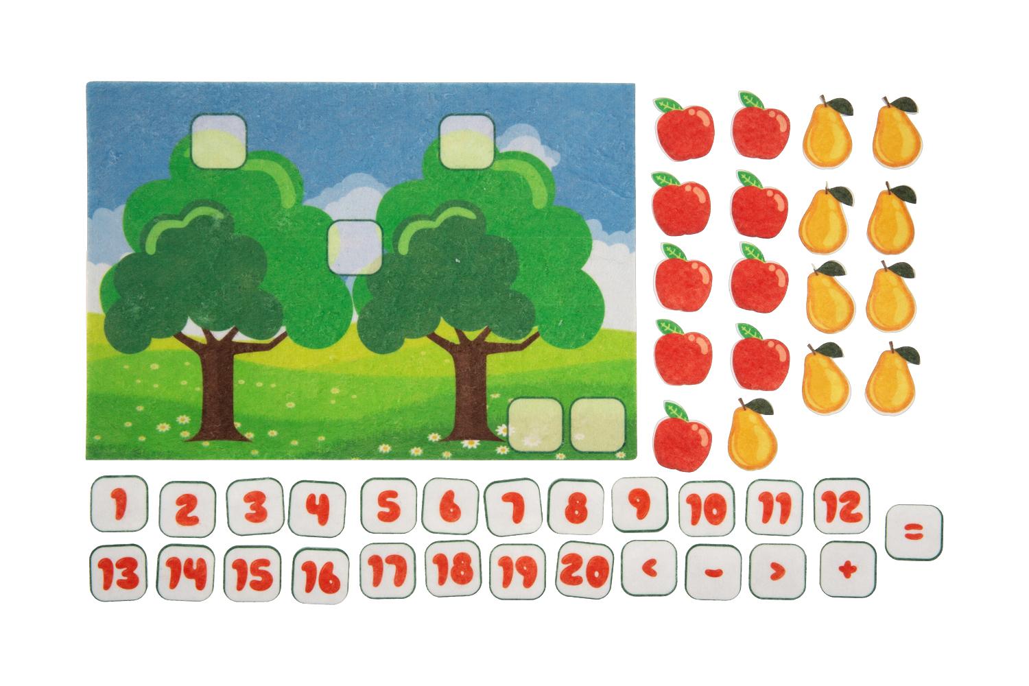 Игровое поле с карманом 28*20см, фигурки яблочек, груш, цифр. Фигурки на липучках.