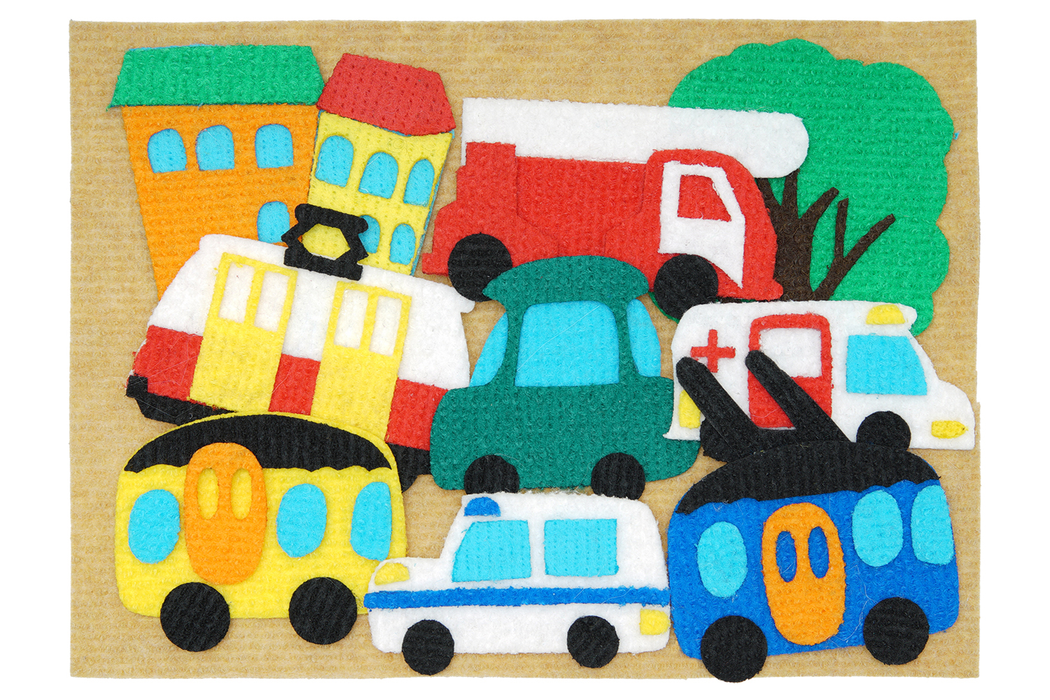 Поле 20*30см, дом, автомобиль, троллейбус, скорая помощь, автобус, трамвай, пожарная машина, полиция, дерево. Фигурки 4,5*10см.