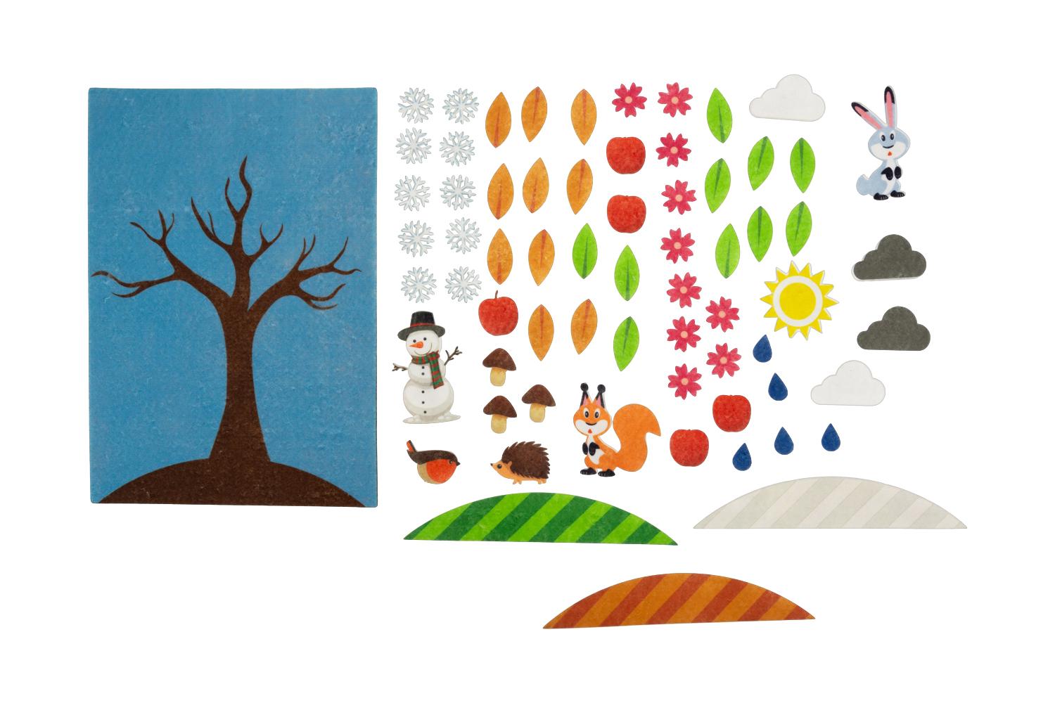 Игровое поле с карманом 28*20см, фигурки животных, листья, цветы, солнце, облака,снежинки, полянки, капельки. Фигурки на липучках.