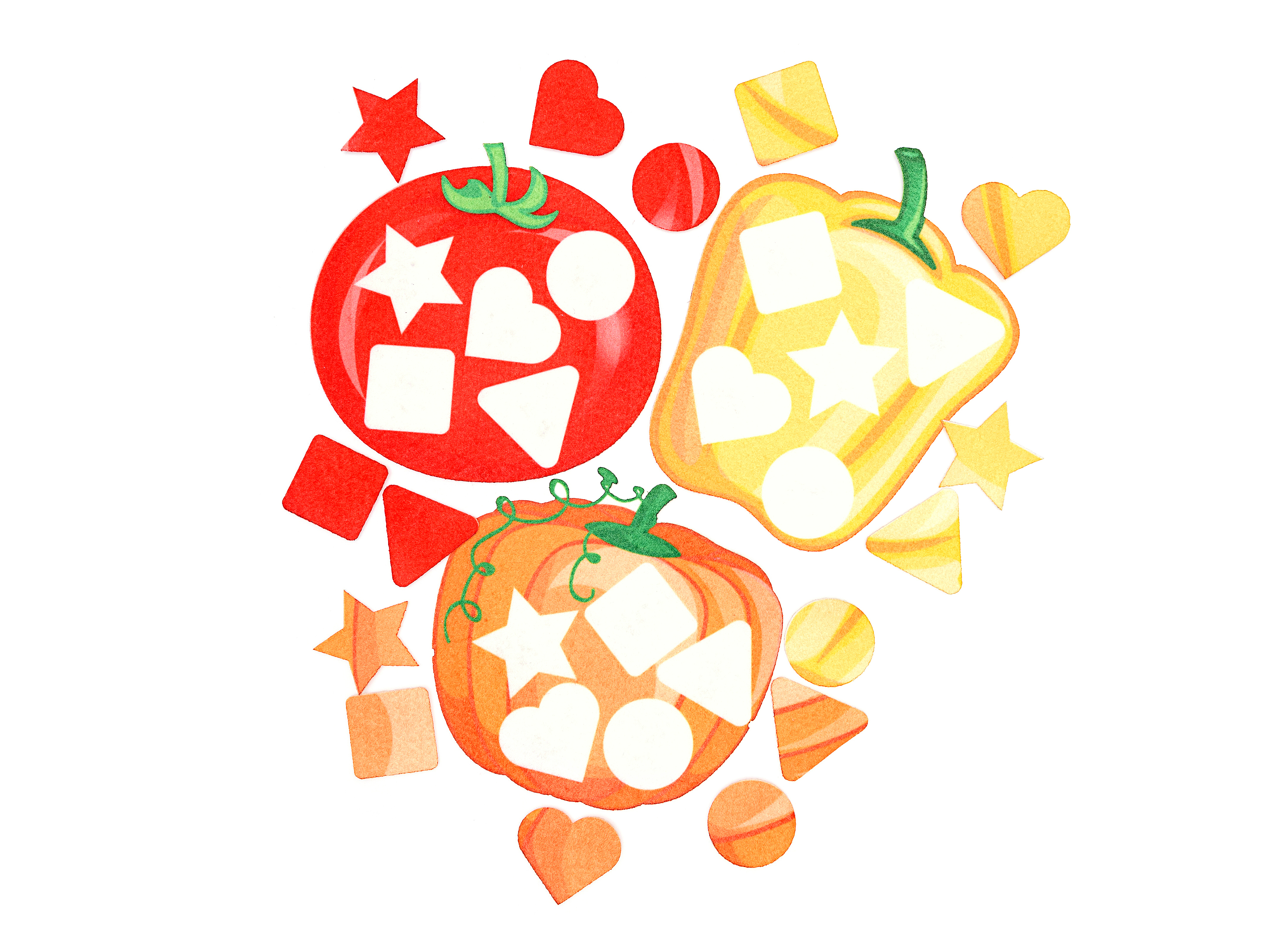 Фигура помидор, перец и тыква 15см высота, геометрические фигурки 15шт. Размер 3см. Фигурки на липучках.