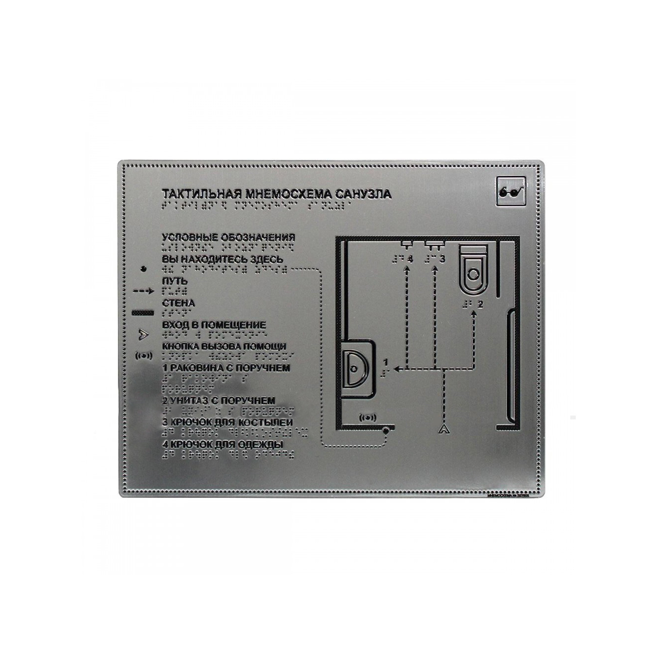 Мнемосхемы по системе Брайля являются важным элементом тактильной адаптации помещений для незрячих. Регламентируется нормативным документом СП 59.13330.2020. Выполнено по ГОСТ Р 56832-2020.