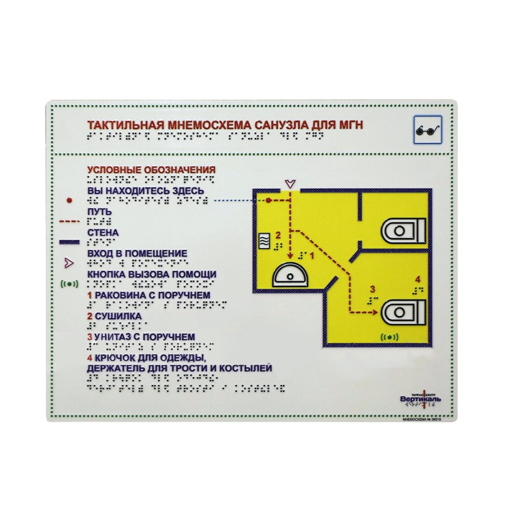 Мнемосхемы по системе Брайля являются важным элементом тактильной адаптации помещений для незрячих.