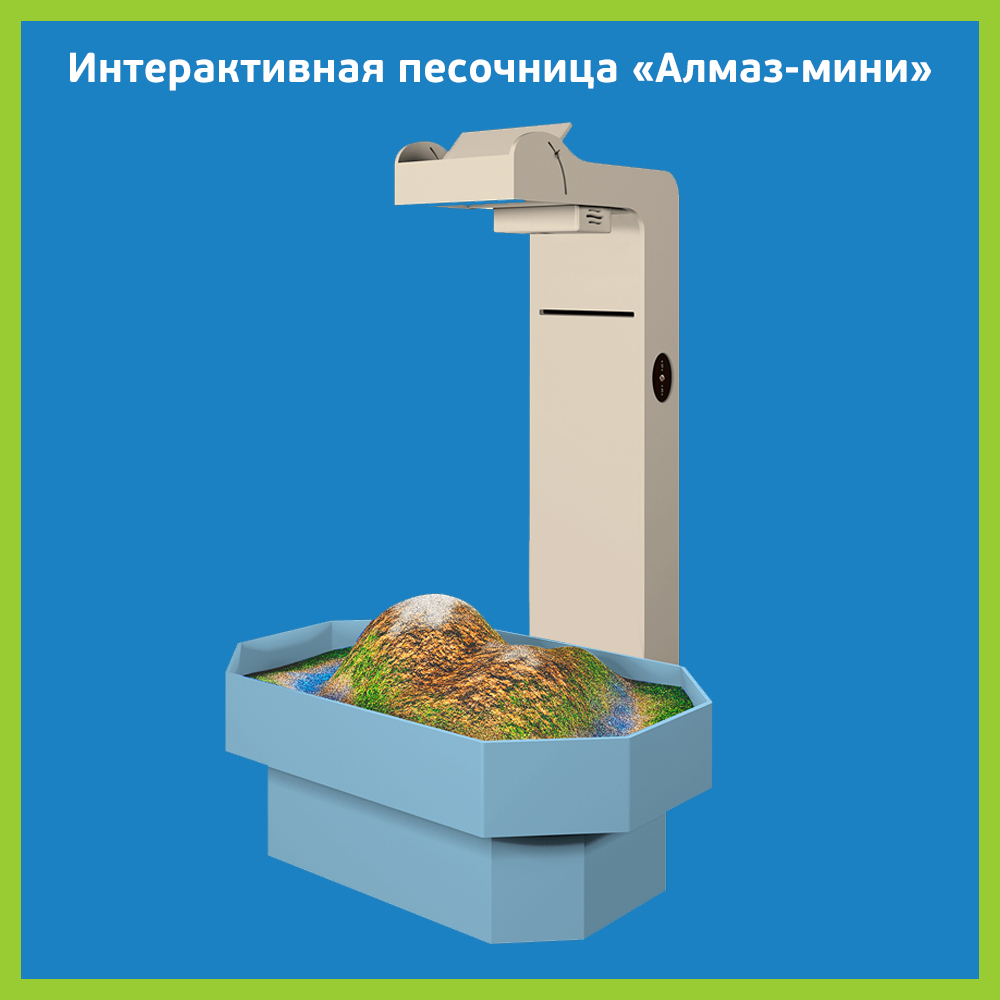 Интерактивная песочница — комплекс, в котором с помощью технологий дополненной реальности обычный песок превращается в земную поверхность с озерами и горами, вулканами и долинами. 20 увлекательных режимов, Российское ПО.