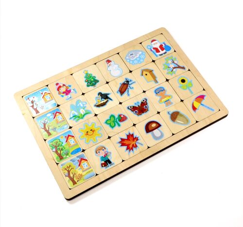 Игра развивающая из дерева «Времена года» сделана по пазловому принципу.
