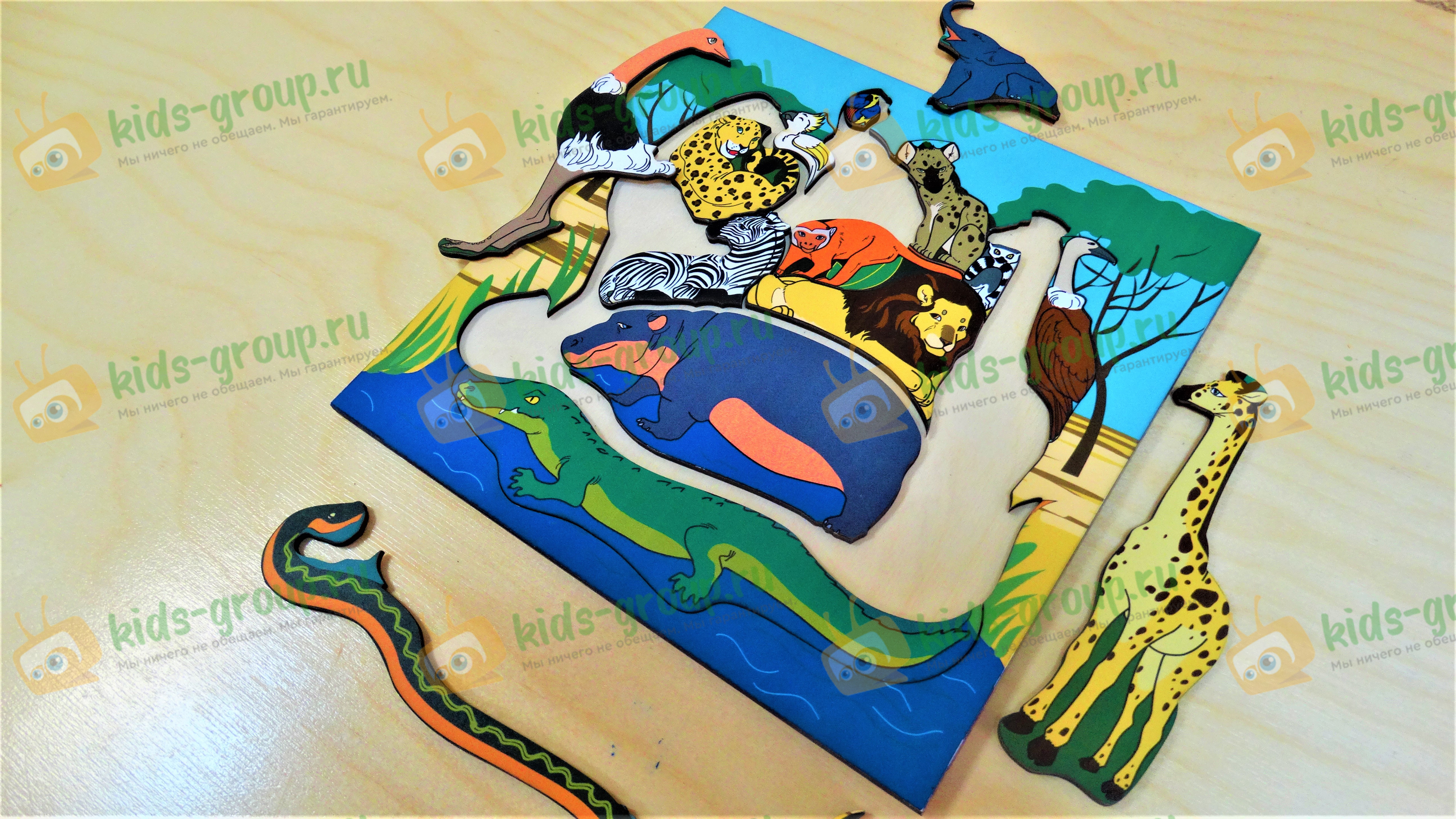 Рамка - вкладыш деревянная ГОЛОВОЛОМКА ЖИВОТНЫЕ АФРИКИ хдф