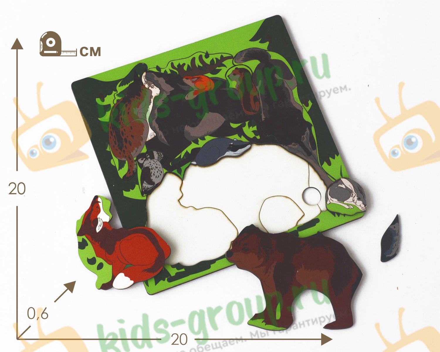 Рамка-вкладыш ГОЛОВОЛОМКА ЛЕСНЫЕ ЖИВОТНЫЕ (фанера УФ печать)