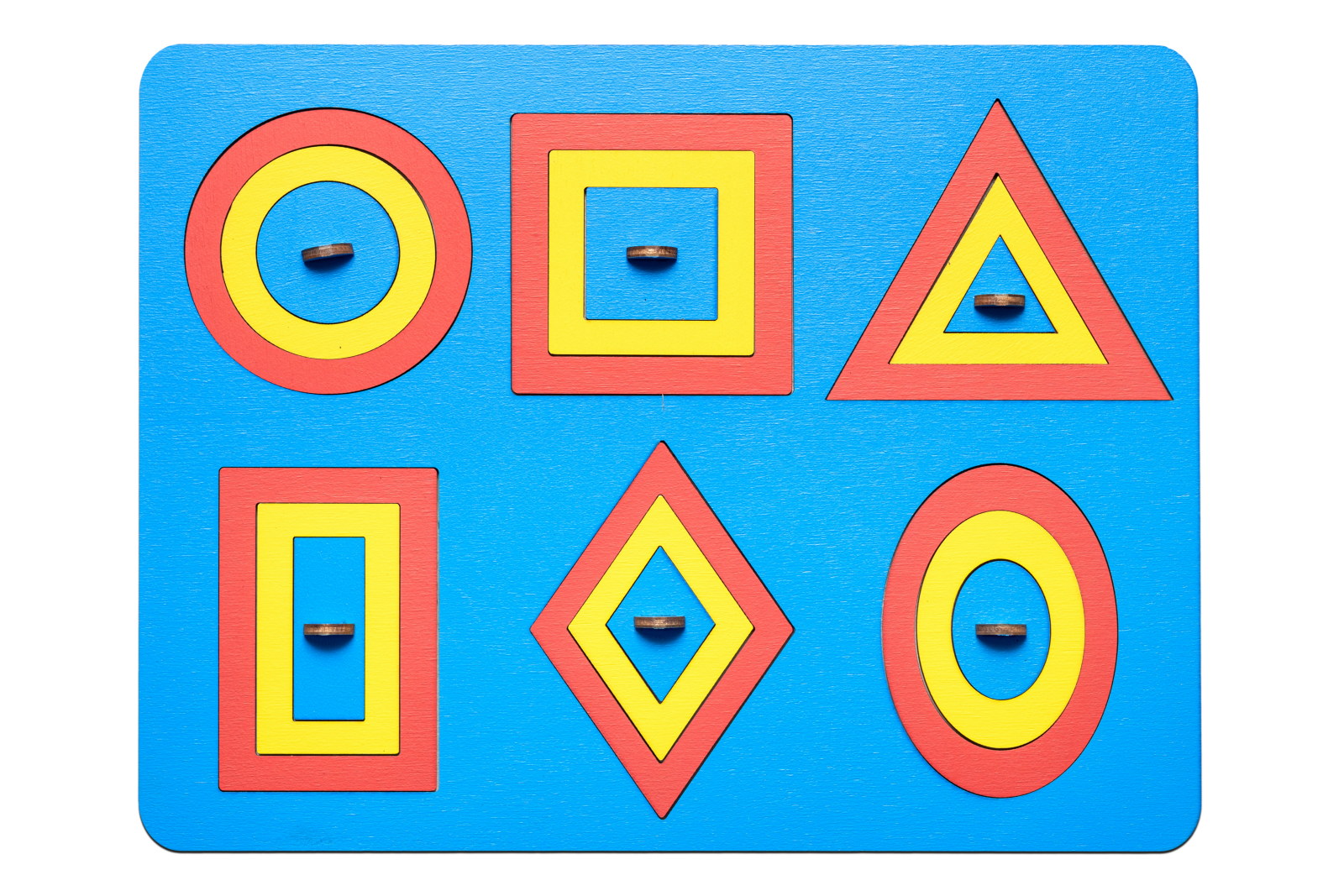 Рамки - вкладыши помогут изучить геометрические фигуры, размер (большой-маленький), разовьют глазомер и координацию движений рук.