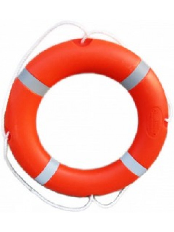 Спасательный круг - индивидуальное спасательное средство для оказания помощи человеку в бассейне. Круг изготовлен из пластика оранжевого цвета. Облегченный, внутри полый. Оснащён леером. По сторонам нанесены полосы контрастного цвета. Внутренний диаметр 45 см, внешний 75 см. Вес 1,6 кг. Согласно рекомендованным нормам количества табельного инвентаря, на бассейн длиной 50 м необходимо 6 шт., для бассейна 25 м – 4 шт., для дошкольных образовательных учреждений, согласно СанПиН 2.4.1.1249-03, требуется 2 шт.