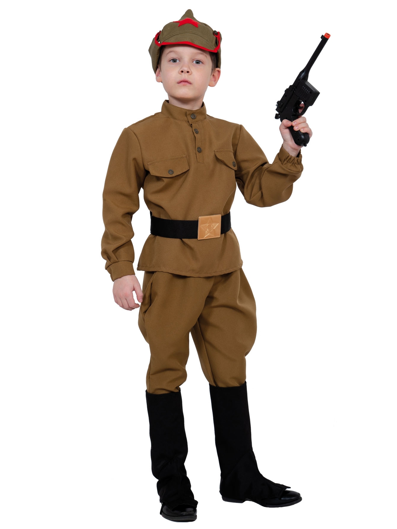 шапка-будёновка, гимнастёрка, ремень, галифе, текстильная имитация чёрных сапог