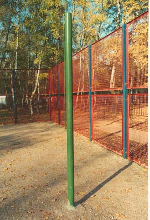 Конструкция представляет собой стальную трубу устанавливаемую бетонированием в грунт, на поверхности стоек расположены петли и/или хомуты для натяжения сетки. Стойки можно использовать для игры в волейбол (мужской, женский, юношеский), бадминтон и большой теннис.
