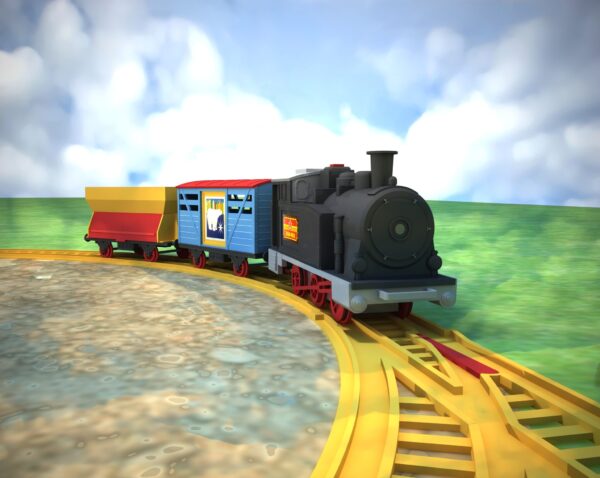 Игрушка состоит из рельс железнодорожного пути, стрелка без перевода и стрелка с переводом, паровоз и два вагона — «Зоо-вагон» с открывающимися дверцами для перевозки зверюшек и «Сыпучий» вагон для перевозки различных грузов. Питание электропривода паровоза осуществляется от трёх последовательно соединённых элементов типа АА. Элементы питания в комплект игрушки не входят. Подробнее