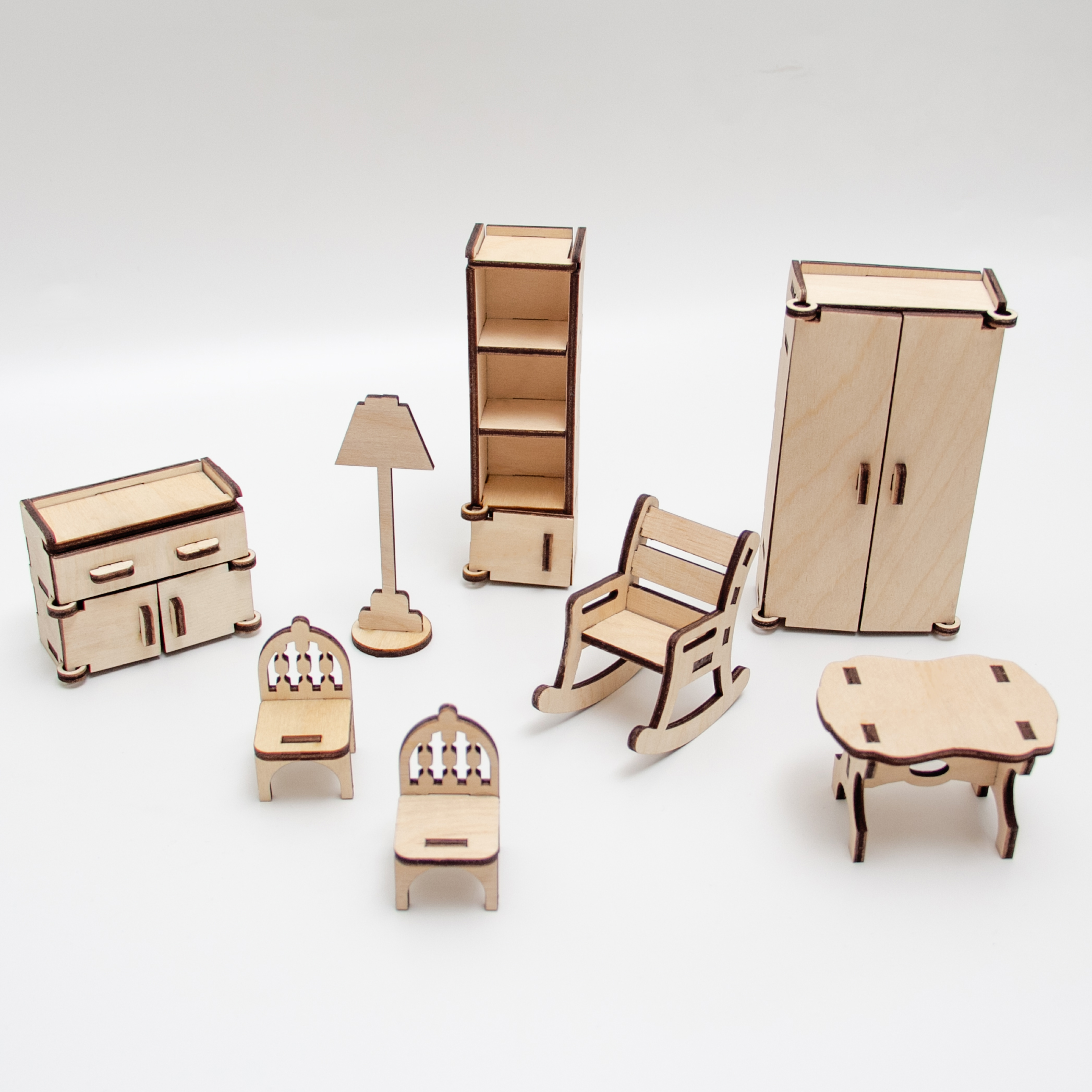 Игрушка изготовлена из дерева – экологически чистого и гиполаллергенного материала. Предназначена для детей от 3 лет. Набор мебели ‘’гостинная’’ создан специально для одной из комнат кукольного домика. Упаковочная коробочка выполнена из древесно-волокнистой плиты высокой плотности. Мебель выполнена из высококачественной березовой фанеры, даже небольшие элементы, такие как ручки на дверцах. Все детали собираются с небольшим количеством клея, просто вставляются в пазы, крепление очень прочное и надежное. Набор кукольной мебели выполнен максимально реалистично – вся мебель имеет открывающиеся двери. Внутри тумбочек и шкафов есть полки. В этом наборе представлено максимальное количество предметов, чтобы дети могли играть долго и придумывать свои сценарии игры. Эти игрушки созданы с любовью и вниманием к вашим детям, пусть они играют с удовольствием и с воображением, развивают дизайнерский и художественный потенциал, обустраивая собственный домик.